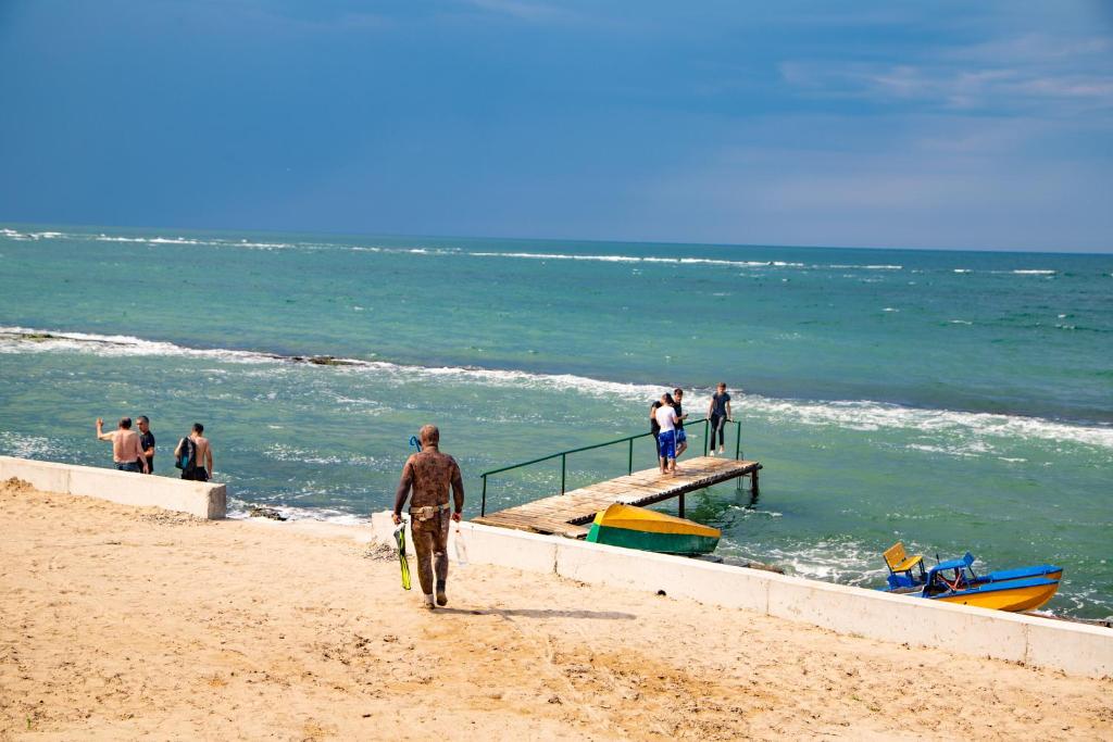 Для гостей работает ресторан русской домашней кухни или же наши гости могут приготовить еду на общей кухне, где имеются все необходимые принадлежности для готовки. Для гостей, путешествующих на автомобиле, предусмотрена бесплатная, полностью охраняемая парковка. «У моря» идеально подходит для семейного отдыха с детьми – комплекс находится на закрытой охраняемой территории, где можно гулять, играть и проводить время так, как хочется. Домики и коттеджи окружены зелеными лужайками, деревьями, клумбами и уголками для отдыха. Разрешается проживание с питомцем за дополнительную плату.