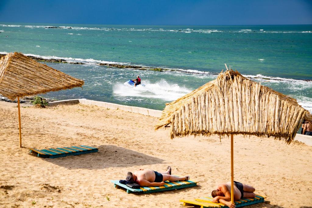 Отель «У моря» – стилизован под прибрежную виллу. Домики и коттеджи построены из дерева и находятся рядом с прибрежной полосой. Каждый наш номер с хорошей звукоизоляцией располагает всеми удобствами для комфортного времяпрепровождения. В распоряжении гостей телевизор с плоским экраном и спутниковыми каналами, письменный стол, удобная кровать, шкаф для одежды, холодильник. Ванная комната оснащена всеми необходимыми туалетно-косметическими принадлежностями. К услугам гостей круглосуточная стойка регистрации и бесплатный Wi-Fi на территории поможет всегда оставаться на связи.
